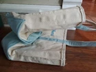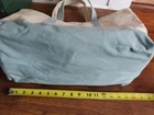Vtg L.L. Bean Natural w/ Blue Trim Canvas Classic Boat & Tote Bag Medium Beach, some stains or dirt on bag, bag says Shari, lined in light blue, see pics for approximate measurements, as is, as pictured, no returns. Shipped USPS