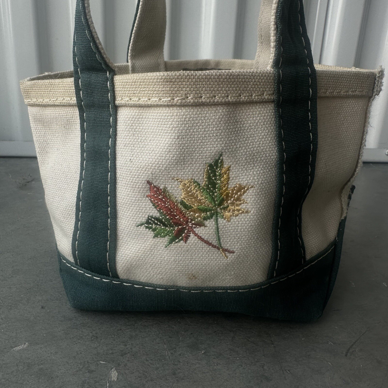 This miniature LL Bean tote bag is preowned and it has a few spots of discoloration