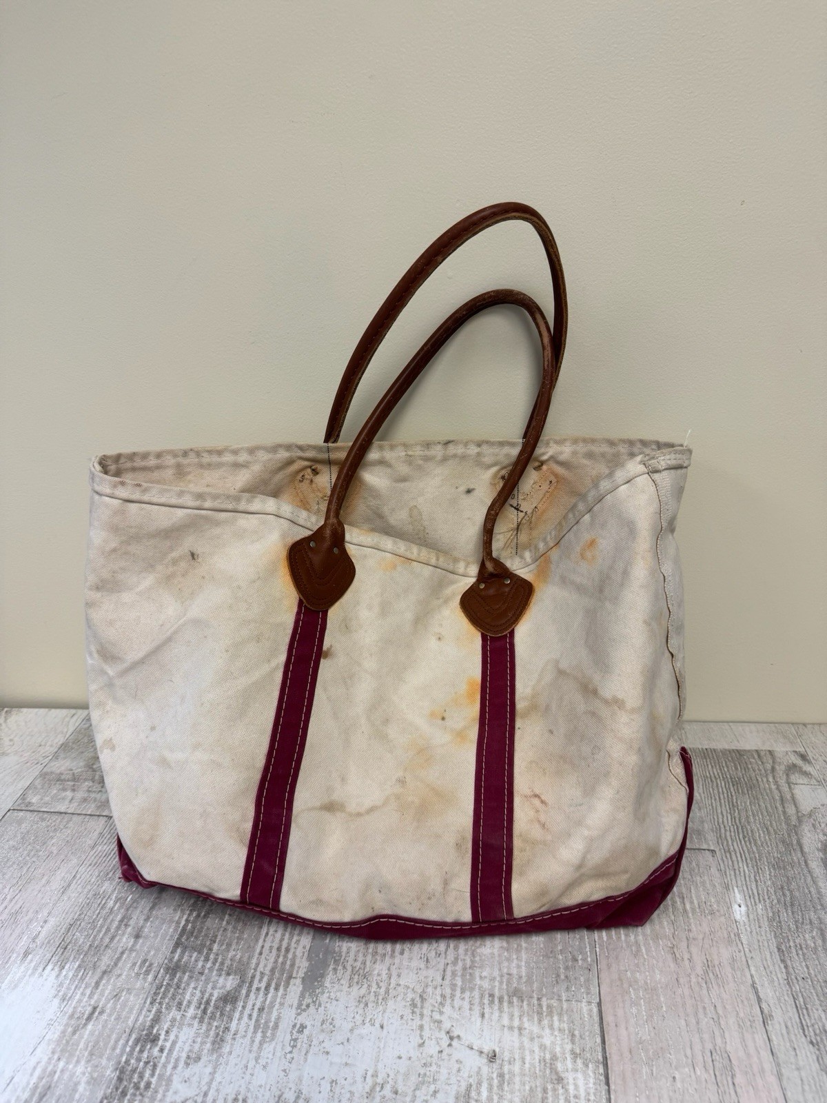 The product is a vintage LL Bean Red Boat and Tote Canvas Bag with leather handles, featuring a solid red color, double handles, and a large size. This unisex adults' bag is perfect for travel, casual outings, and workwear, and is associated with themes such as USA, 80s, classic, 90s, 70s, and old money. Made in the United States, this bag combines the durability of canvas with the luxury of leather handles, making it a stylish and practical accessory for any wardrobe.