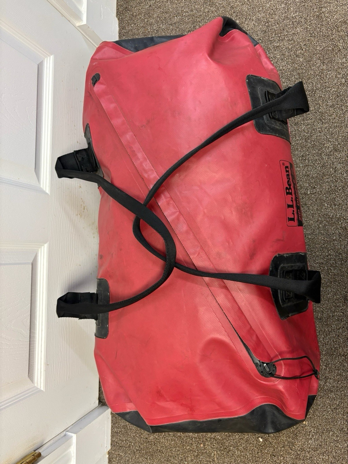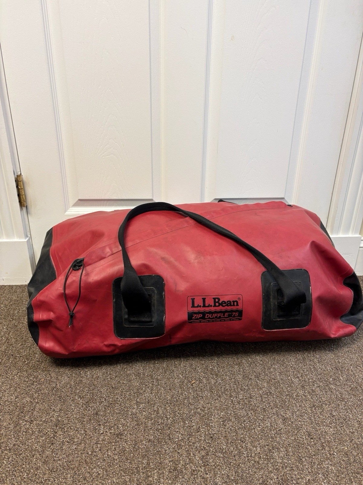 The Vintage L.L Bean Weekend Zip Duffle in red is a large and sturdy travel bag perfect for weekend getaways. Made in the USA in 1970, this duffle features a durable nylon and vinyl exterior with leather handles for a classic look. The zip closure and canvas lining make it both functional and stylish, ideal for the man who values quality and heritage in his accessories. Perfect for the connoisseur of vintage luggage, this duffle is a timeless piece that will only get better with age.