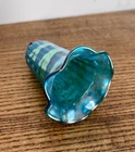 LUNDBERG STUDIOS-Vintage AURENE Art Glass Green & Gold Iridescent BELL Shaped Ornament-Signed-NWT Made in 1988...absolutely beautiful colors and execution. Original Tag-Never Used...MINT Like New Condition. Measurements: 2.5" round at bottom, 4" high Signed LS 88
