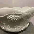 This punch bowl / stand / ladle is in great shape. No chips, cracks. Pictures 11 and 12 do show a little defect. The ladle appears to have a burned/melted spot on it. Clear Manufacturer Mark on solid cast iron base. Please refer to the pictures for the best details of the exact item you are receiving. Photos are NOT stock photos. This antique punch bowl set by Lancaster Colony Co. is a stunning piece of decorative glassware that will add a touch of colonial style to any home. The milk glass material and harvest pattern make it a unique and eye-catching addition to your collection. The set includes a stand and ladle, making it perfect for use as a decorative piece or for serving guests at your next gathering. The brand, COLONY, is known for producing high-quality glassware with a production style of milk glass. This punch bowl set is a perfect example of their craftsmanship and attention to detail. It is a great addition to any home decor, and its timeless design will ensure that it will be a treasured piece for years to come.