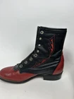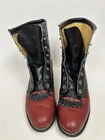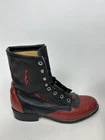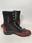Step into classic Western style with these Vintage Laredo Boots, crafted for those who appreciate timeless fashion and quality. These boots feature a sleek black leather upper, complemented by a distinctive red and black vamp design, ideal for adding a bold touch to any outfit. The lace-up closure ensures a secure fit, while the robust construction echoes the rugged spirit of the cowboy tradition. Perfect for any enthusiast looking to inject some Western flair into their wardrobe, these size 8.5 boots are a testament to Laredo's dedication to craftsmanship and style.