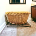 TAP HERE to read more about Vintage Large 17 Inch Woven Bamboo Wicker Cane Laundry Basket Round Storage Vintage Large 17 Inch Woven Bamboo Wicker Cane Laundry Basket Round Storage Condition: Excellent Condition: Shows almost no signs of wear/discoloration expected for age/handling with no specific/notable deterioration, wear or issues. Approximate Measurement/Size: 16.5" diameter x 7" tall Approximate Total Weight: 1 LB 8 OZ. Description/Specifications: This beautiful round wicker basket is perfect for adding a touch of vintage charm to any room. Crafted from natural woven wood, it is a great way to store and organize items such as laundry, plants, and more. The 17-inch diameter and sturdy construction make it a great choice for any home. The natural color and texture of the wicker will add a unique touch to any decor. Vintage Large 17 Inch Woven Bamboo Wicker Cane Laundry Basket Round Storage ⚜ US Military Family owned and operated Small Business ⚜ From Sept 1980 brick-and-mortar shop; 43 years later, still Family run & now entirely on-line ❣ We’re honored, humbled & thankful for you shopping Small & American owned ❣ ABOUT US · FEEDBACK · STORE · CONTACT US
