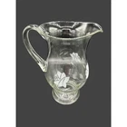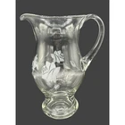 Vintage Large Etched Rose Blown Glass Pitcher Applied handle 10" T Absolutely a beautiful piece. No chips or cracks Deep etched roses and leaves. 8" wide including handle and spout.