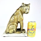 The gold metal Tiger Statue is a captivating piece that showcases a tiger theme in a nature scene. Made of metal, this antique figurine originates from India, giving it a unique cultural and artistic touch. Standing at a height of 10.5 inches, this statue is a symbol of power and beauty, making it a stunning addition to any collection or decorative display. There is some ware of the gold. Zoom in and see the photos This is a heavy piece weighing over 5 lbs. missing one foam foot on the bottom. Let me know what questions you have. Blessings to you!ππππππππ€π