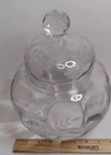 This vintage crystal ginger jar is a stunning piece that will surely add elegance to your home decor. Made of high-quality, unmarked crystal, this large round jar comes with faceted Crystal ball lid and measures 9.5 inches in length and clear etched glass. The production style of this jar is crystal and it is perfect for displaying ornaments or holding cotton balls , bath salts with glam. This piece belonged to an elderly neighbor that had it for years but didn't remember the brand. It looks like a vintage Princess House item. No chips or cracks.