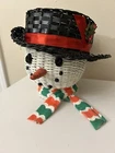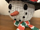 Vintage Large Wicker Rattan Snowman Frosty Head Hat Planter Basket Hand Painted Approximately 8.25” H and 6” W Good condition- refer to pics With Plastic insert