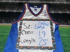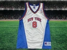 This vintage Champion jersey features Latrell Sprewell's number 8 for the New York Knicks in white. The jersey is officially licensed by the National Basketball Association (NBA) and is perfect for any basketball fan. It is made for boys in size large and is ideal for regular season games. The jersey is a great addition to any sports memorabilia collection and is perfect for wearing to games or displaying in a fan cave. Note: lite spot