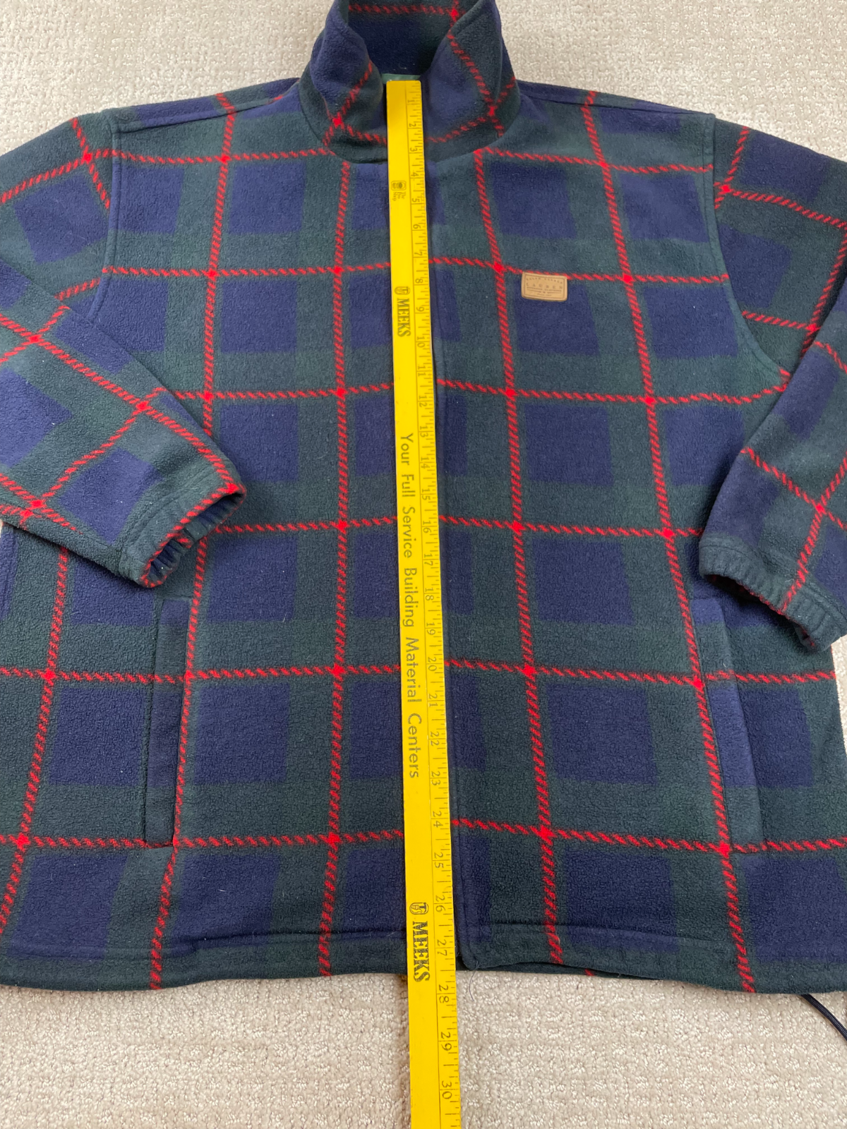 This Vintage Lauren Ralph Lauren Jacket is a stylish and cozy addition to any woman's wardrobe. Made from polyester with a plush fleece fabric, this jacket features a classic tartan plaid pattern and a full zip closure. Perfect for a casual occasion, this bomber style jacket in size M offers a regular fit and is machine washable for easy care. Ideal for the winter, fall, and spring seasons, this basic jacket from the renowned brand Lauren Ralph Lauren is a timeless piece that will add a touch of retro charm to any outfit.