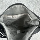 This is a vintage Le SportSac crossbody messenger bag in black nylon. It is medium-sized and suitable for women. The bag has a classic and timeless style, perfect for any occasion. The brand is well-known for its quality and durability.