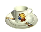 Vintage Leart 3 Pc Baby Dish Set Made in Brazil Very good condition Features traveling bears in browns, yellows and blue Gold rim accents on all 3 pieces No chips or cracks (Please see photos!) Very slight signs of wear on bowl rim. Perfect special gift for a little one! Thank you for looking!