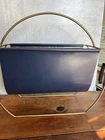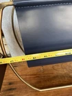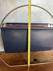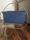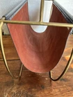 Stylish magazine holder, beautiful navy leather with burgundy suede inside. Brass metal frame. Believe this to be very early 2000’s. Could be used for newspaper, knitting supplies, remotes or anything really. Made in India, sleek lines would complement any decor. 2 available. $40 each or $75 for the set of two. Local Dallas delivery available. 16” H x 17.5” w x 6.5” deep.