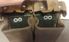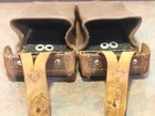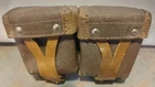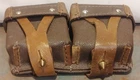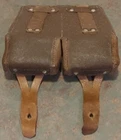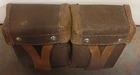 This is a great Vintage Leather Double Magazine Belt Pouch Holder. Has leather straps which hook to brass pin for securing. Large interior pouches. Lids close securely. Belt clips on each pouch.