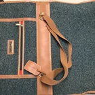 The "Vintage Garment Bag by Frequent Traveler" is a 20" when folded in half, green canvas garment bag designed by Henry Rosenfeld Luggage in Syracuse, New Jersey. It features adjustable straps, a clothing compartment, and a locking mechanism for added security. This unisex adult garment bag is suitable for carry-on use and is made in China. Perfect for storing and transporting clothing while on the go, this bag combines functionality with a retro style that appeals to those who travel often. Don’t believe that it has ever been used. Comes with original lock and key. Measures approximately 20 inches when folded, approximately 44 inches open. Nice bag. Please look at the pictures closely, as this is the item that you will receive.