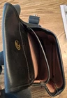 The product is a vintage leather Kolpin shell bag designed for clay target shooting with shotguns of any gauge. It is a practical accessory for shooters to carry and store their ammunition while engaged in shooting sports activities.