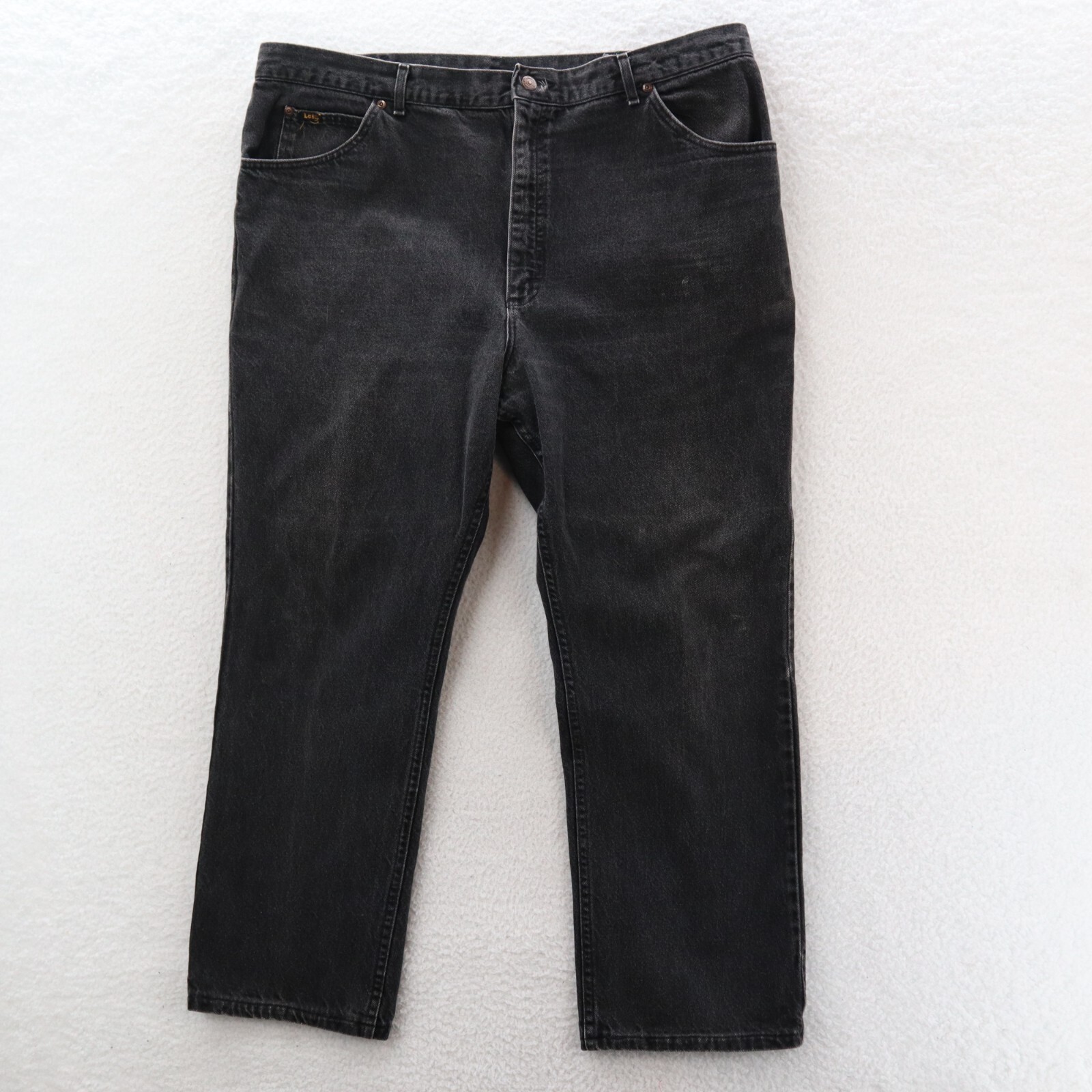 Vintage Lee Jeans Men's 44x32 Black USA Union Made Straight Leg Workwear Denim This item is in pre-owned condition and therefore may show signs of previous use, such as small stains, holes, or other wear. Please view all of the items photos as any defects will be documented there. Sizing in the title and item specifics are based on what the tag says. Measurements can be seen in the photos.