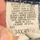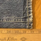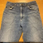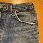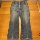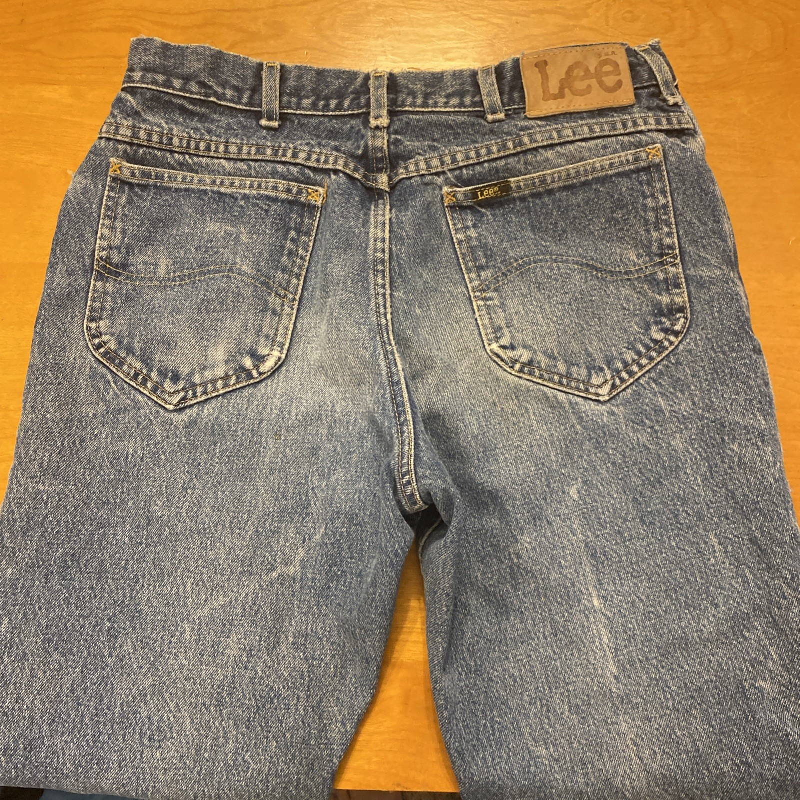 The product is a pair of vintage Lee jeans in size 34x30, made of blue denim and crafted in the USA. These classic jeans feature a zip and button closure, a straight style, and are made of 100% cotton denim fabric. Someone over the years hemmed these and used rubber cement? to keep them together? PLEASE SEE PICTURES It is on the inside and is not hurting anything These are pre owned vintage jeans please look over pictures and measurements