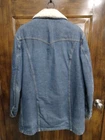 This vintage Lee denim jacket is the perfect addition to any wardrobe. Made of 100% cotton and featuring a button closure, it's perfect for casual or workwear occasions. The mid-length jacket is lined with warm and cozy sherpa for the fall, winter, or spring seasons. The solid blue color and western-themed accents, including the Lee logo, make it a classic piece for any outdoor or ranch setting. Crafted in the United States, It's machine washable for easy care and is made of durable denim fabric. Whether you're looking for a vintage piece or a new addition to your chore-inspired wardrobe, this jacket is sure to impress. Unknown size. I wear a large in shirts and jackets and I would guess it's either a Large or Extra-Large depending on how they sized it.