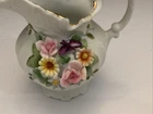This beautiful and unique vintage item from Lefton China is perfect for collectors of porcelain items. The hand-painted floral pattern on this pitcher/creamer/vase is a stunning addition to any collection. The item is made of high-quality porcelain and was crafted in Japan. The item weighs 6.8 ounces and has a height of 4.5", with a width of 4.5". It is recommended that this item is hand washed only for its care instructions. The multicolor floral design on this item makes it an excellent addition to any flower-themed decor, and it is sure to stand out in any room.