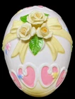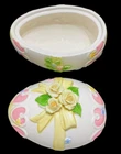 HomeVintage Lefton Easter Egg Trinket Dish Bisque Applied Yellow Roses on Lid