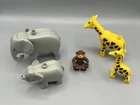 Lego Duplo Set 2689 Vintage Savannah Animals Airplane And Figures Condition Notes: a) used condition, as pictured b) includes figures c) does not include instructions d) does not include original packaging e) pieces have normal wear and tear associated with display and use f) note this is a vintage set and wear is greater than newer sets More significant condition notes: a) large elephant has green marks in the back b) paint is wearing in the lake portion of the base plate c) Savannah vehicle and figures have yellowing of the white color which is all common with this age of item *** Please ask any additional questions Shipping: Shipped UPS, USPS, or FedEx per seller option. Will combine shipping on multiple purchases - please check listings for other Lego sets