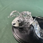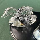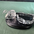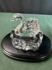 Add a touch of elegance to your collection with this beautiful Lenox Crystal miniature swan figurine. Crafted in Austria during the 1970s, this original piece features clear crystal and intricate details that bring the swan to life. Measuring at 3 inches in length, this figurine is the perfect size to display on a shelf or table. The swan's glass lake stand adds an extra element of charm to the piece, making it a great addition to any decorative collection. Whether you're a collector or simply looking for a unique gift, this Lenox Crystal miniature swan figurine is sure to impress.