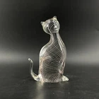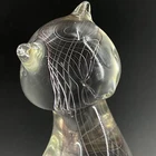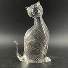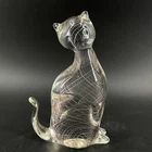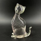 Vintage Lenox Fine Crystal Purple Swirl Striped Art Glass Cat Figurine Statue Paperweight 7 1/2" tall. Original sticker on bottom.