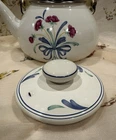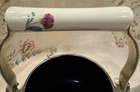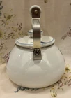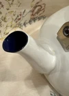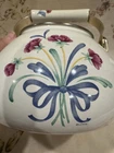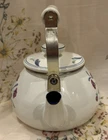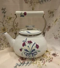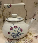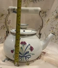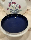 Crafted with an eye for the elegance of bygone eras, this Vintage Lenox Poppies on Blue Tea Pot is a charming addition to any collection. The white enamel interior promises a bright, clean look, while the vibrant floral pattern of poppies on a blue background adds a lively pop of color to your tea service collection. Designed to hold up to 8 cups of your favorite brew, this kettle is a testament to the timeless appeal of Lenox craftsmanship. The lid has a couple rust spots (see pictures). There are some knicks and scratches as to be expected due to the age. Can use a good scrubbing :)