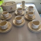 Add a touch of vintage charm to your dining table with this 25-piece set of Lenox Temper-ware Merriment. The set includes a variety of pieces such as salt and pepper shakers, plate set, serving bowl, side plate, and cup, all of which are crafted from high-quality stoneware and ceramic materials. The floral pattern and beige color give the set a timeless and elegant look that is perfect for any occasion. This Lenox dining set is made in the United States and has a rich history that dates back to America's past. The set is perfect for collectors and enthusiasts alike who appreciate the beauty and durability of vintage dinnerware. Whether you're hosting a formal dinner party or a casual family meal, this set is sure to impress your guests and make your dining experience memorable.