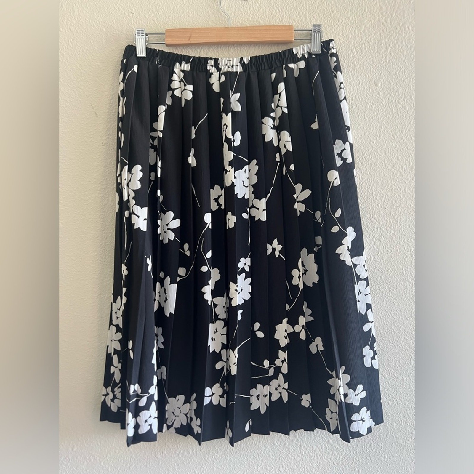 Vintage Leslie Fay Black Floral Pleated Skirt Size 16P Whimsigoth Boho