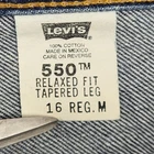 Levis 550 Jeans Womens 16 Regular Medium Blue Relaxed Fit Tapered Leg Denim Condition: Gently worn, no visible flaws. Excellent used condition with no rips, stains, or holes. 100% cotton denim for classic durability and comfort Made in Mexico Popular Levis 550 style with relaxed fit through hip and thigh Tapered leg for a flattering silhouette, classic five pocket styling Levis leather patch at waistband, traditional Levis arcuate stitching on back pockets Tag size: 16 Regular Medium (Womens) Style code: 15551-4837 Zip fly with button closure Perfect for everyday casual wear, easy to style with tees or sweaters Disclaimer: Different sources of lighting can change your perspective on the color of the clothing Disclaimer: All clothing is measured in a resting position lying flat. All items have been cleaned per eBay standards & policies. We ship items daily via USPS Ground Advantage or Priority Mail with a tracking number for confirmation, so expect a quick delivery. We also offer free 30-day returns!! Please feel free to reach out anytime with any questions you may have. Thank you for shopping at Curiosity Corner RVA!!! Follow my store for greater discounts seller:kevredfor_0