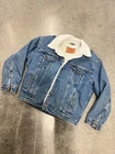 Vintage Levi's Blue Denim Jean Jacket Men's Large Synthetic Shearling Lined Made in USA. Great condition. Two of the copper buttons have a little tarnishing. 1206