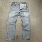 Minor staining and distressing as shown in photos 34” x 30” Super light wash Fire fit Butterfly button closure 5 pocket design Made in USA Jan 1993 production date Shipped same day