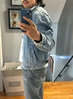 Levis Denim Jacket Mens Large Blue Trucker Jean Coat Cotton USA Vintage. Beautifully sun faded over the years with removed patches that mainttained the original color (check photo 6). Repairs made on the back so all tears/rips are covered from the inside. DM for measurements and any questions. I'm happy to provide them.