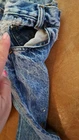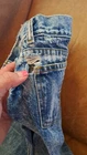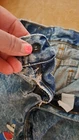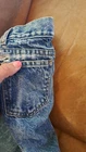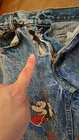 In extremely Preowned condition. This is a vintage pair of Levi's jeans. Mickey hitting a baseball. Size is unknown the tag is very worn, look like it says kids size 10. Not sure though. Measurements are in the pictures. The jeans have multiple rips , holes, button missing. They are definitely a fixer upper pair, or can be used for the mickey emblem, if u want to cut it off and reattach it to something. Also a work or play pair of jeans. The Levi tag is no longer attached. I have it in a zip lock bag. It is ripped, torn and pieces have come off. All I could salvage of it is in the zip lock. Shipped with USPS Parcel select ground.