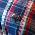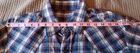 Nice vintage blue with red plaid Levi's short sleeve shirt. It has pretty blue pearlized buttons and yokes on the front and back. It's very lightweight, soft fabric and easy care. The care instructions have been washed away, but I machine washed and put in the dryer, and it did fine. It also looks good without ironing. The size is also missing. Please see the measurements in the photos. I believe it to be a vintage Large but more of a modern medium. Again, please see photos as the size is gone.