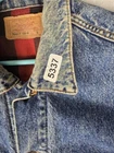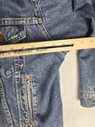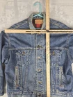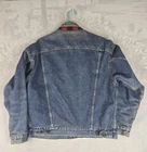 Up for sale is a vintage Levi's Denim Trucker Jacket in red flannel lined size Large. This jacket features a button closure, collared style, and a short jacket/coat length. It is made of cotton outer shell material with a cotton lining and insulation material. The jacket is machine washable and has pockets for added convenience. This Levi's Trucker Jacket is perfect for any occasion whether it be travel, party/cocktail, casual, or workwear. It has a relaxed fit and is great for walking, hiking, and school activities. The jacket is a solid blue color with a vintage look and feel, making it a great addition to any wardrobe.