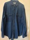 This Levi's Red Tab Denim Shirt is a vintage piece that any fashion-savvy man would love to add to his wardrobe. Made from 100% cotton, it features a button-up closure, button front pockets and long sleeves. The shirt is a size L and is perfect for casual occasions, it's a quintessential denim shirt that effortlessly combines fashion with function. The shirt is made in Korea and is of great quality. It is a regular size type and is suitable for men of all ages. This shirt is a must-have for any fashion enthusiast who loves vintage clothing. Please review photos