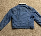Vintage Levi's San Francisco Denim Sherpa Lined Jean Jacket USA Made Size 42 R Very nice fade on this denim Levi’s Jacket Has a small distressed part as I show on the pictures For measurements and conditions I recommend see pics before you buy Thanks