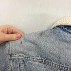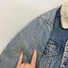 Has wear on the cuffs, large marks on the sleeve and back. Look at pictures for more details.