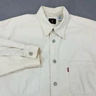 Brand---Levis Color---Cream Stains or Holes---Some small spots on this, please see pictures Tagged Size---Medium Actual Measurements--- Please see pictures for actual measurements Fabric Content---Cotton Please check out my other listings and bundle for a better price and shipping discount.