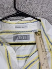 Vintage Levis Silver Label Striped Short Sleeve Button Up Shirt White Size Large Preowned Condition This vintage Levi's button-up shirt features a silver character on a white and striped cotton blend material. The short sleeve shirt has a collared neckline and button closure with pockets on the front. It comes in size L and is machine washable for easy care. The shirt is perfect for a casual occasion and has a regular fit suitable for all seasons. The retro 90s theme makes it a unique piece for any collection.