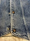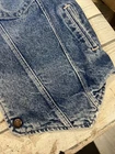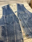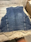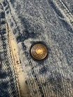 This Levi's denim vest is a limited edition piece that will surely make a statement. Made of high-quality denim material and lined with soft cotton, this vest is perfect for the winter season. It features a snap closure and a multicolor design that is sure to catch the eye of any sports enthusiast. Note some of the tags have been cut off . Has a few small flaws that I will note in photos. Own a rare Levi jean vest! When the vest is snapped, hit to pit 22 inches shoulder to shoulder 17 inches end of shoulder to end of vest 25 inches sizes are approximate. E37- The vest is a size large and is made in the United States, making it a unique addition to any wardrobe. Whether you're going for a 90s look or just want to stay warm and stylish, this Levi's denim vest is the perfect choice.