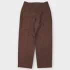 This is a pair of Vintage Levi's Women's Bend Over Pants in a size 34 with a high rise and a relaxed fit. The pants are brown in color and feature a solid pattern with a pull-on closure for easy wear. Made from a polyester blend fabric, these dress pants have a straight leg style with a 31-inch inseam. They have a classic 80s theme and are machine washable for easy care, showcasing an elastic waist for added comfort. Perfect for casual or business occasions, these Levi's pants offer a timeless and comfortable style for everyday wear. Tag Size: 34 Best Fit: * Women: Approximate Flat Measurements: * Waist: 16” * Rise: 14” * In Seam: 30.5” Condition: No Noticeable Flaws All items are second hand, many being vintage and may have small imperfections. Anything major is noted.