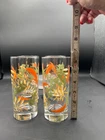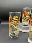 The product is a set of 4 vintage Libbey Crisa tumbler glasses Look alike with a Seasons Leaves pattern, featuring a Mid-Century Modern style in clear glass. These glasses are perfect for drinkware and barware, adding a touch of nostalgia to your collection. Made of durable glass, these tumblers are in excellent condition and can serve as a stylish addition to any home. They are 6 1/2 inches tall and 3 inches wide.