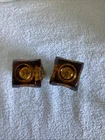 This vintage set of Dark Amber Glass Salt & Pepper Shakers by Libbey features a retro design with a decorative shape, adding a touch of darkness to any table decor. The geometric pattern and small size make them suitable for all occasions, with a gold color that complements the retro style. Crafted from glass in Hong Kong, these shakers include removable tops for easy cleaning and are designed for salt and pepper use, making them a functional and stylish addition to any kitchen or dining space.