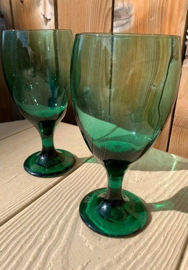 Vintage Set of 2 Libbey Juniper Green Glasses Goblets Teardrop Holiday Glasses. Condition is Used. Shipped with USPS Ground Advantage.