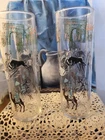 This product is a set of 4 vintage Mid Century Libbey World Travel Tom Collins bar glasses. Made of multicolor glass, these tumblers are an original product line from the Century series. Produced in the United States, these glasses are a nostalgic piece of drinkware for those influenced by the retro aesthetics of the mid-20th century. Perfect for adding a touch of vintage charm to any bar or collection.