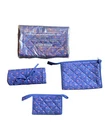 This vintage Lillian Vernon set includes four pieces of quilted floral travel bags and cosmetic bags. The blue cotton material and 1980s design add a touch of nostalgia to your travel collection. Made in China, these bags are perfect for any traveler looking for a unique and stylish accessory. Whether you're a fan of vintage luggage or simply looking for a functional travel companion, this set is sure to please.